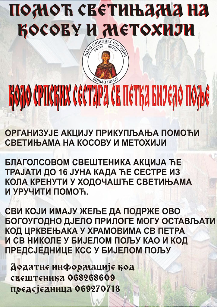 По благослову Његове Светости Патријарха српског г. Порфирија и Епископа будимљанско-никшићког г. Методија, у четвртак, 23. маја 2024. године Господње, у 12.00 часова, звониће сва звона на православним храмовима позивајући верни светосавски народ на усрдну молитву, смиреност, међусобну солидарност и непоколебљивост у чињењу добра, упркос потпуно лажним и неправедним оптужбама којима је изложен у Организацији уједињених нација.