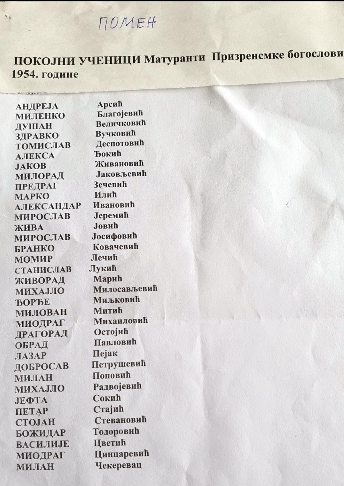 На Видовдан, 28. јуна 2024. године, у храму Светог апостола Марка у Београду молитвено је прослављена седамдесета годишњица матуре ученика Српске православне богословије у Призрену.