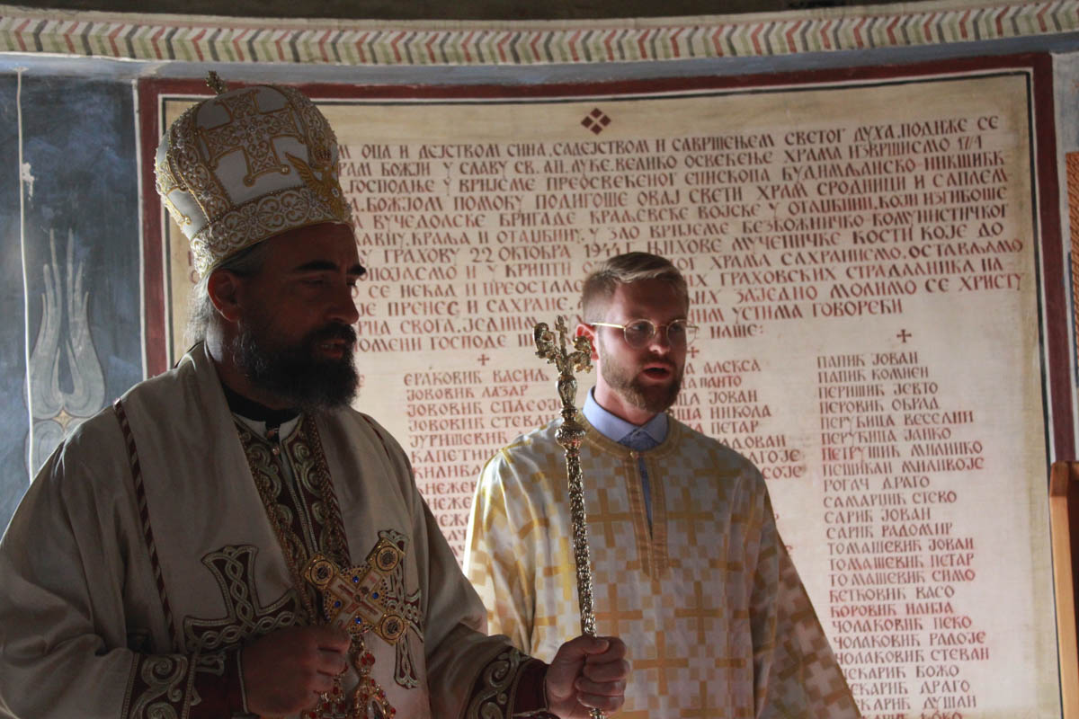 Преосвећени Епископ је у спомен-цркви Светог апостола Луке одслужио помен граховским мученицима, припадницима Вучедолске бригаде Југословенске краљевске војске у отаџбини, који су на овај дан 1944. године убијени у Грахову, а чији земни остаци почивају у манастирској капели.