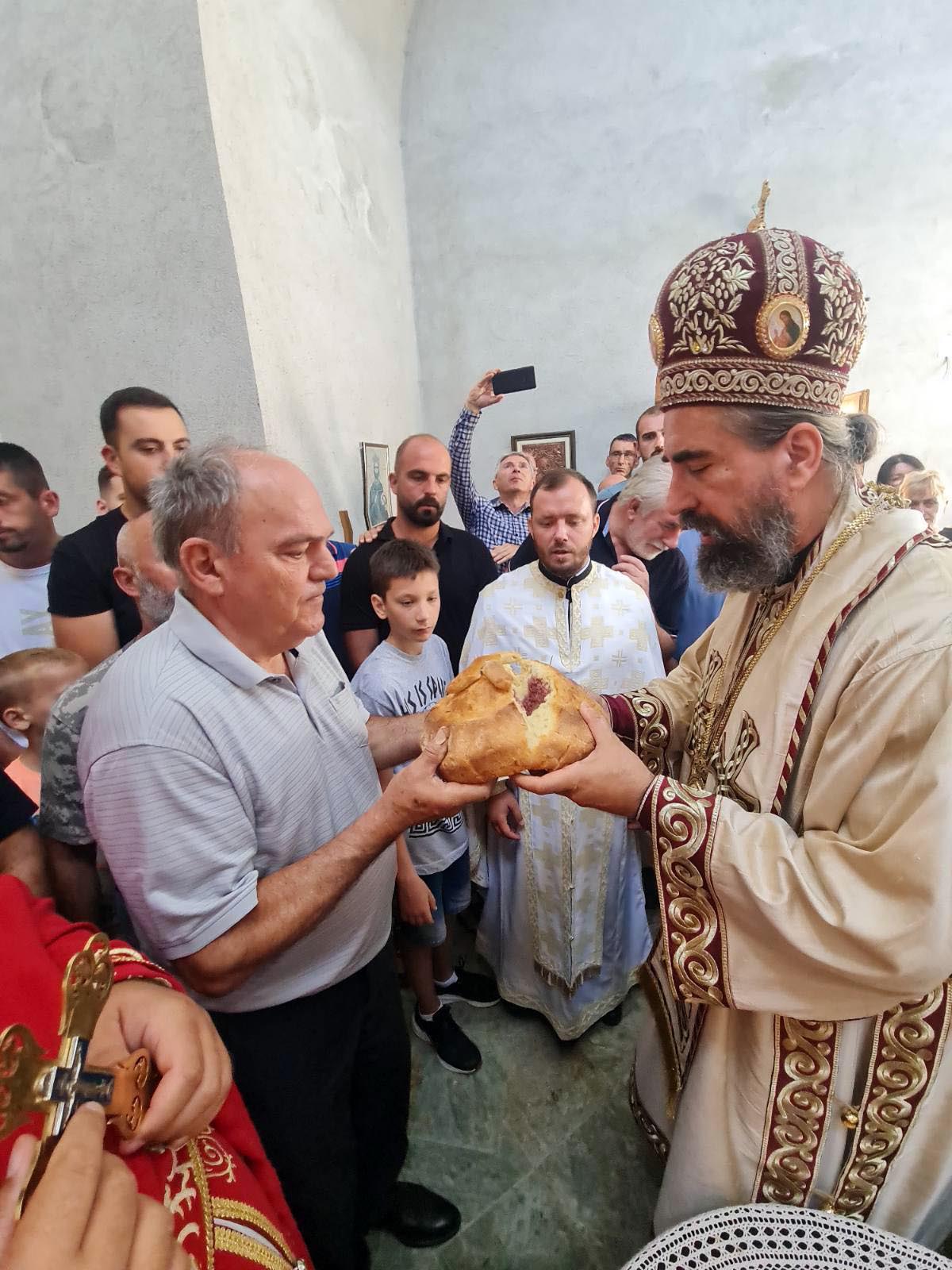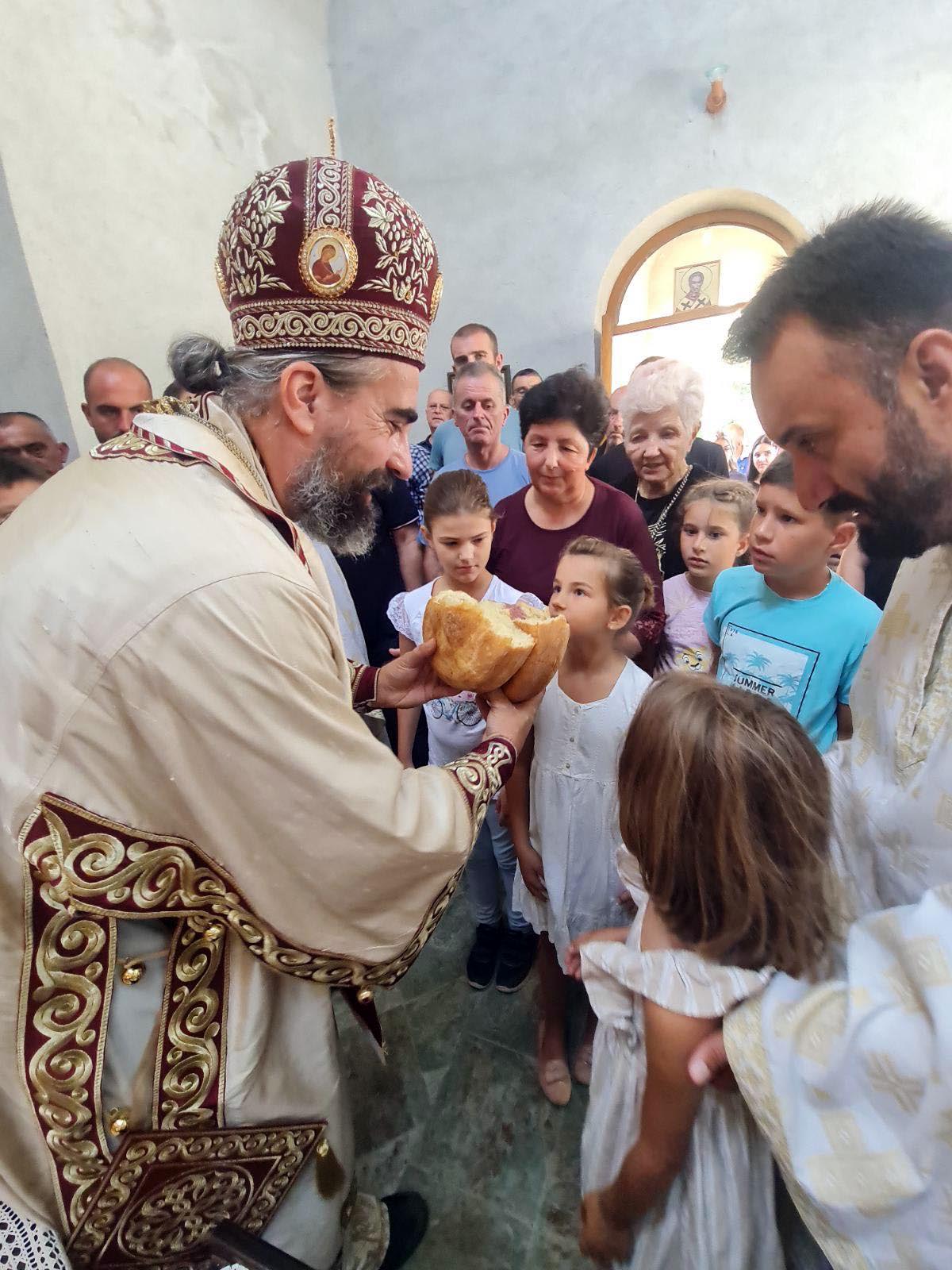 Након одслужене Литургије Преосвећени Епископ је преломио славски колач.