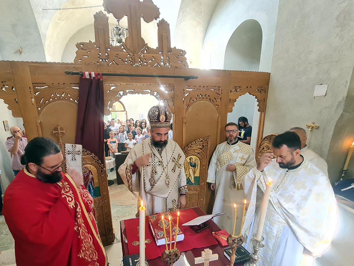 Његово Преосвештенство Епископ будимљанско-никшићки Г. Методије служио је, на празник Светог мученика Евдокима, Госпојинске покладе, у уторак 13. августа 2024. године, Свету Архијерејску Литургију у цркви Светог Николаја Мирликијског, у Војном Селу код Плава.
