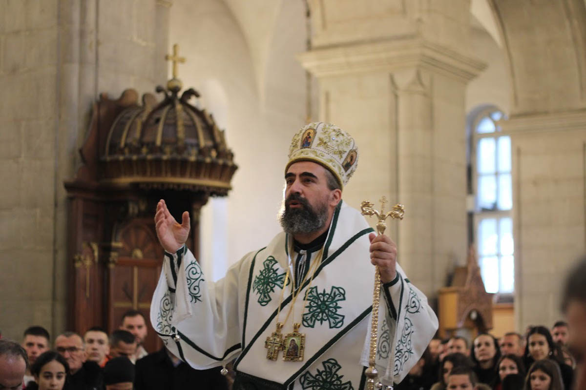 „Прва заједница црквена око Христа окупљена те ноћи витлејемске, коју ми вечерас прослављамо, била је Она са заручником својим Јосифом, са пастирима који су цијелу ноћ чували стадо, маргинализованим људима из најнижих друштвених слојева тог времена и простора када се Христос родио, али и са три мага или мудраца са истока, незнабошца који су, пратећи звијездујер су били звјездознанци, астролози, који су пратили звијезде, преко њих Бог им је јавио и довео их к познању свјетлости истине и извора живота и истинске праве вјере. Толико је вјекова прохујало од те мале заједнице у витлејемској ноћи, коју ми прослављамо, да се та заједница разрастала и ширила, развијала, надограђивала и постала велика васељенска црквена заједница од којих смо један дио и ми, овдје окупљени око колијевке Богочовјека и Богомладенца Христа, Чијим Тијелом и Крвљу смо се причестили и сабрали да се мирбожамо, да се загрлимо и волимо“, рекао је Владика.