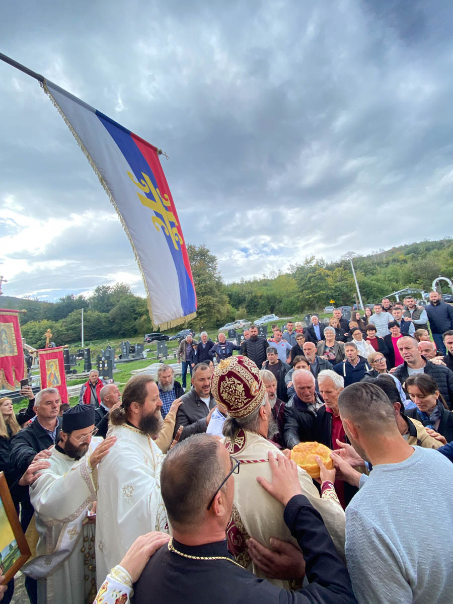 „Обећао је да ће сваки човјек, по васкрсењу мртвих, имати то тијело, исто као што сад носимо само духовно тијело, подвргнуто законима Духа, иако је материја. Дакле, нова твар. Само је један васкрсао до сад, а сви остали, овјде ми сабрани и ови који су овдје похрањени, у овом гробљу, чекамо васкрсење обећано Христово, да васкрснемо и устанемо Његовим васкрсењем. Сви они који иду за Њим, и који вјерују, који су повјеровали да је Он Син Божји, да је истински Бог, који исповједају исто оно што је апостол Тома исповједио кад се Он поново појавио и рекао: Томо, приђи овамо и пружи прсте своје и стави у ране од клинова, пружи руку своју и стави у ребра моја, и не буди невјеран, него вјеран“, бесједио је Његово Преосвештенство.