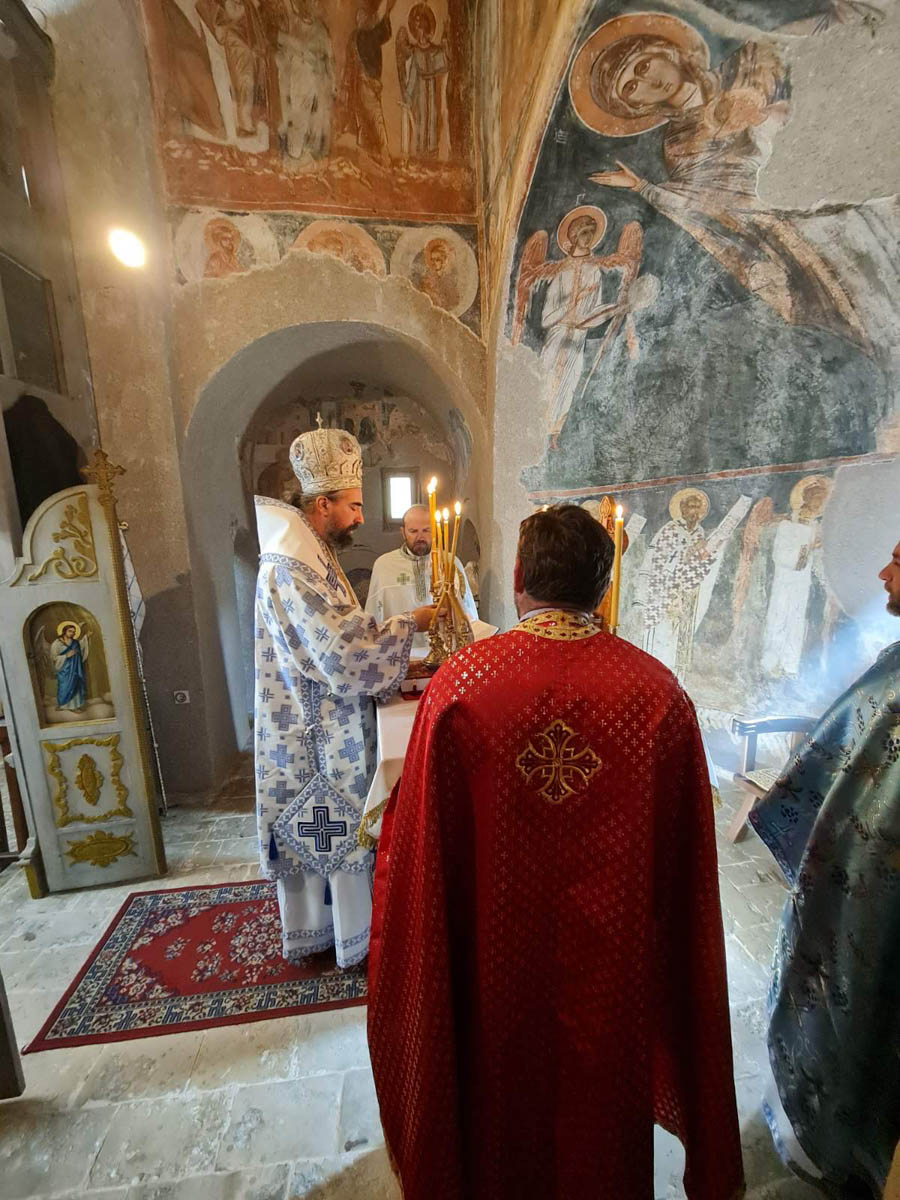 Његово Преосвештенство Епископ будимљанско-никшићки Г. Методије служио је, у суботу треће недеље Часног поста, на празник Светог Артемона и Претпразништво Благовести, 6. априла 2024. године, Свету Ахијерејску Литургију у манастиру Добриловина код Мојковца.