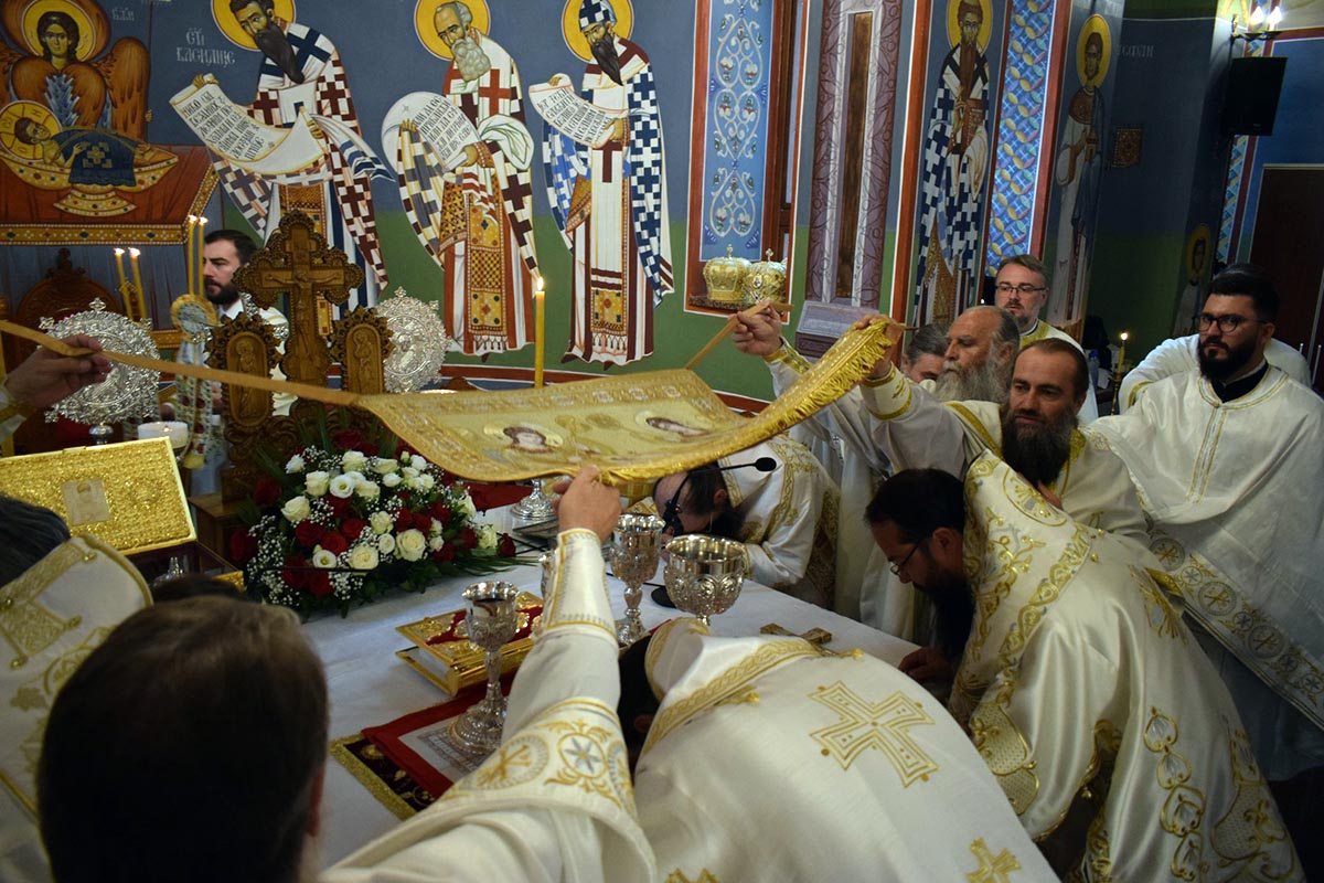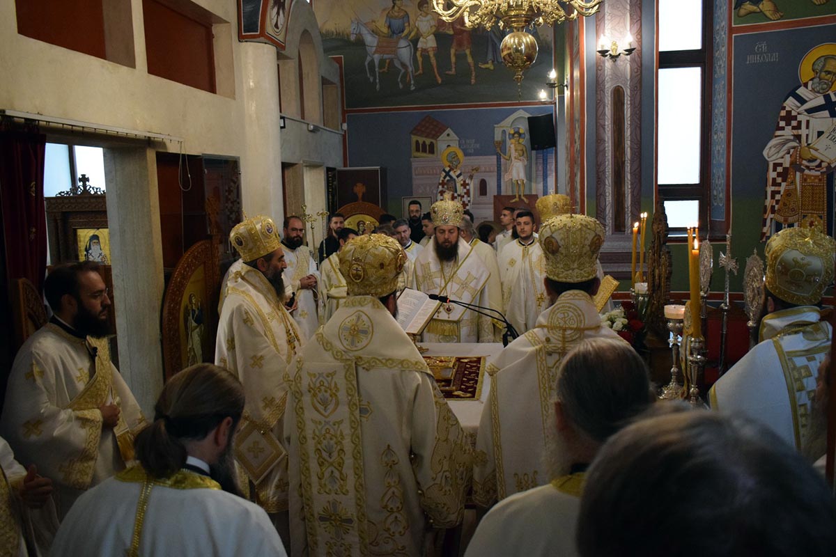 Светим литургијским сабрањем началствовао је Његово Преосвештенство Епископ нишки г. Арсеније, уз саслужење Његовог Високопреосвештенства Митрополита тетовско-гостиварског г. Јосифа, Његовог Преосвештенства Епископа стобијског г. Јакова, Његовог Преосвештенства Епископа тимочког г. Илариона, Његовог Преосвештенства Епископа буеносајреског и јужно-централноамеричког г. Кирила, Његовог Преосвештенства Епископа јегарског и нареченог британско-ирског г. Нектарија, као и великог броја свештенства и монаштва Српске и Македонске Православне Цркве.