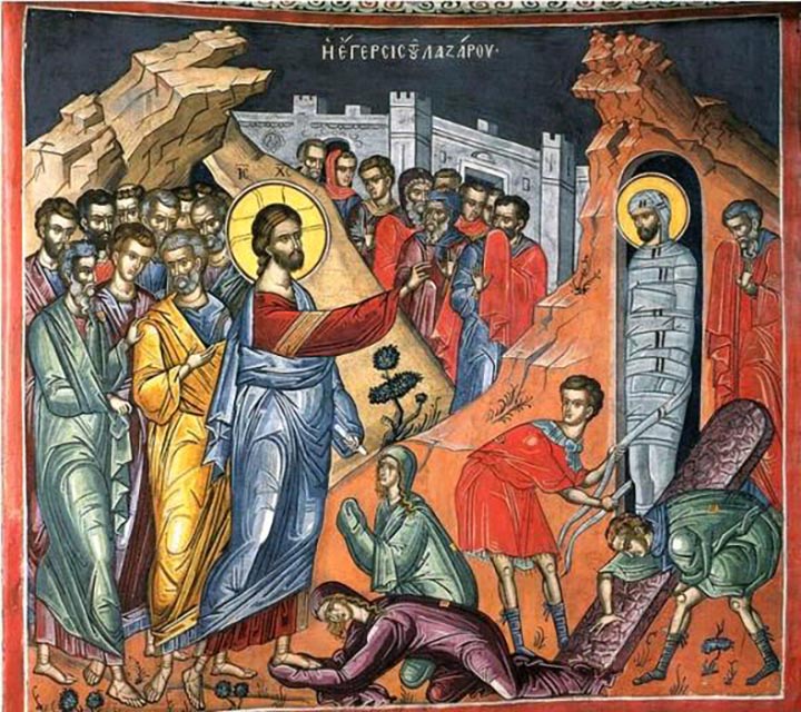 Христос се – у време када је умро Лазар – налазио далеко од Јерусалима. Христос је стигао у Витанију четири дана после Лазареве смрти и тамо затекао Лазареве сестре Марту и Марију и Лазареве пријатеље како горко плачу и тугују за својим умрлим пријатељем.