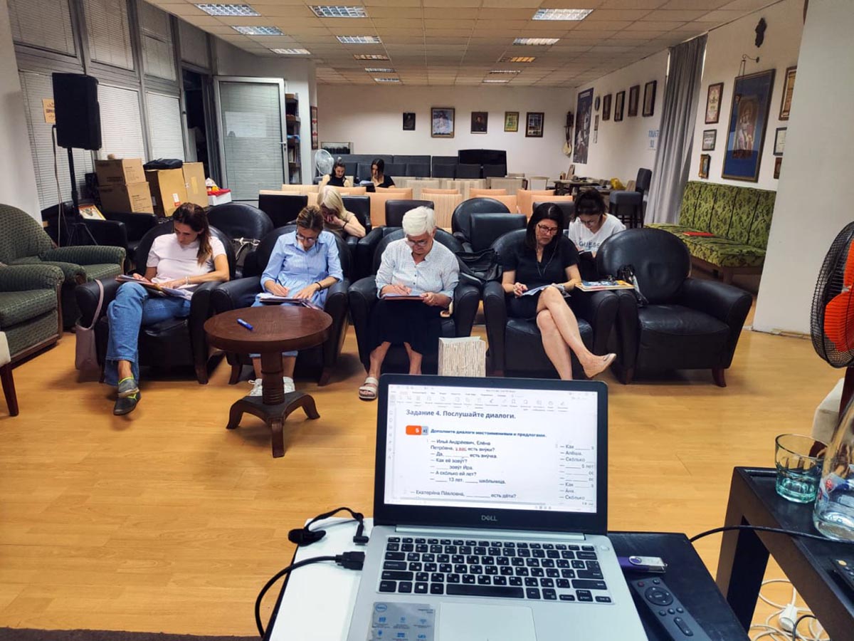 Половина програма Летње школе за интензивно учење руског језика у Никшићу је пређена. Полазници, подељени у четири групе према нивоу познавања језика, успешно савладавају градиво уз помоћ свог предавача, руског педагога Надежде Кондрат.