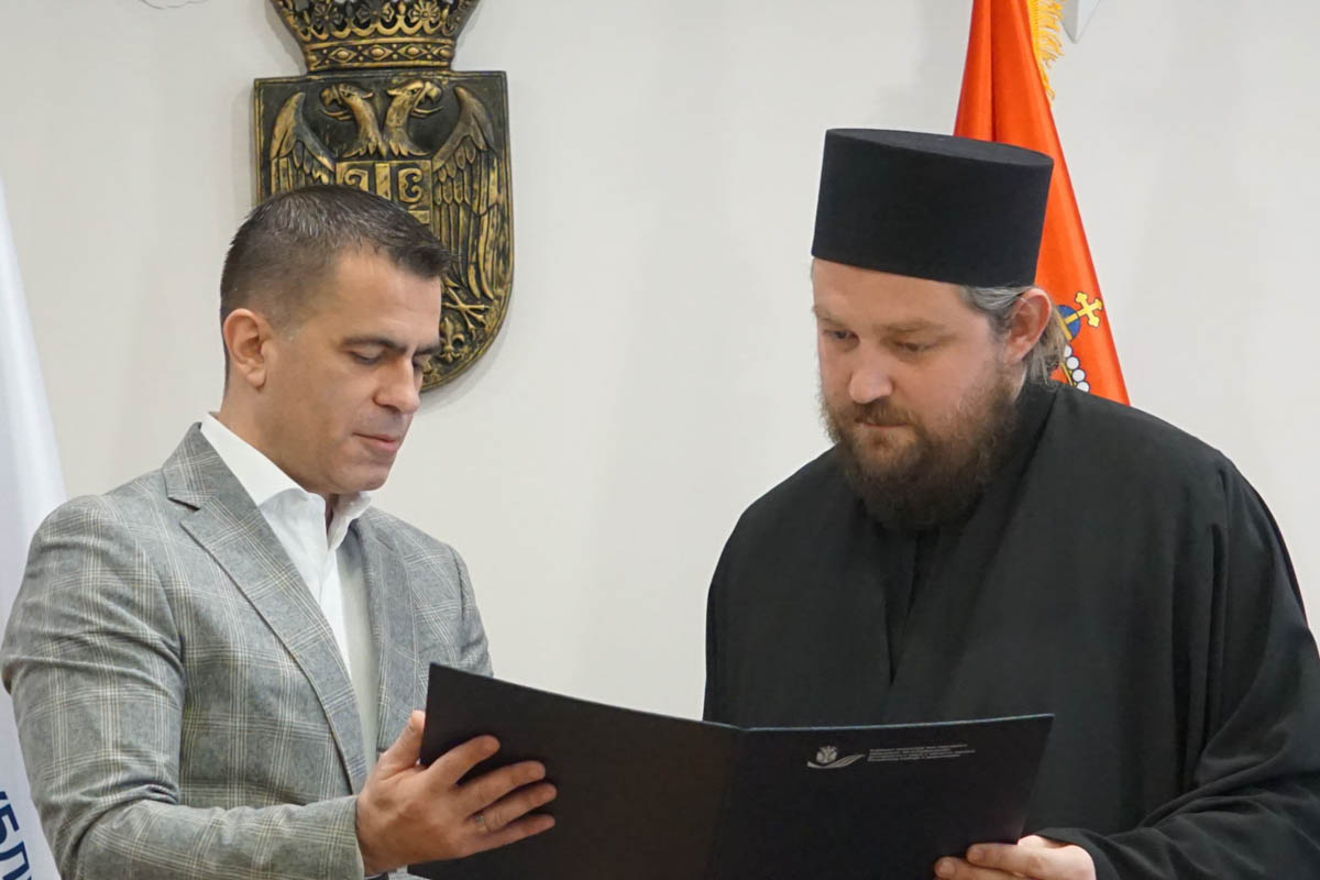 Протосинђел Евстатије захвалио је министру Милићевићу на подршци коју држава Србија пружа нашем народу у Црној Гори. Министру је поклонио слику манастира Острог као и комплет песама Тодора Живаљевића Величког које су посвећене српској Метохији.