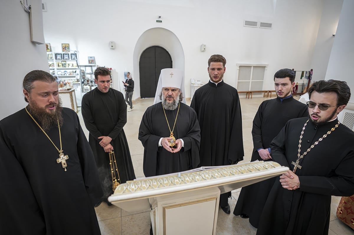 У Свето-Преображењском храму Митрополита Јоаникија дочекао је Његово високопреосвештенство Митрополит тверски и кашински г. Амвросије са свештенством, објављено је на званичном сајту ове епархије.
