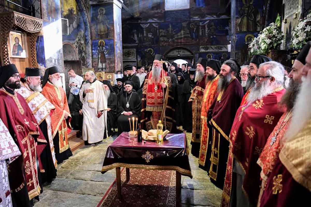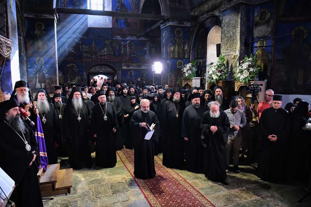 Вечерњем богослужењу молитвено су присуствовали: Високопреосвећени Митрополит преспанско-пелагонијски г. Петар из Македонске православне цркве – Охридске архиепископије, Високопреосвећени Архиепископ и Митрополит зворничко-тузлански г. Фотије, Високопреосвећени Архиепископ и Митрополит рашко-призренски г. Теодосије, Високопреосвећени Митрополит европски г. Пимен, Високопреосвећени Митрополит кумановско-осоговски г. Григорије, Високопреосвећени Архиепископ михаловско-кошички г. Георгије из Православне цркве чешких земаља и Словачке, преосвећена господа епископи: новобрдски Иларион, викар Патријарха српског, велички Никола и делчевско-каменички Марко и умировљени Епископ кумановско-осоговски г. Јосиф, бројно свештенство, монаштво и вјерни народ.