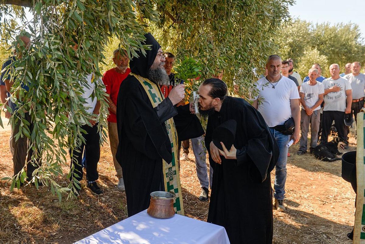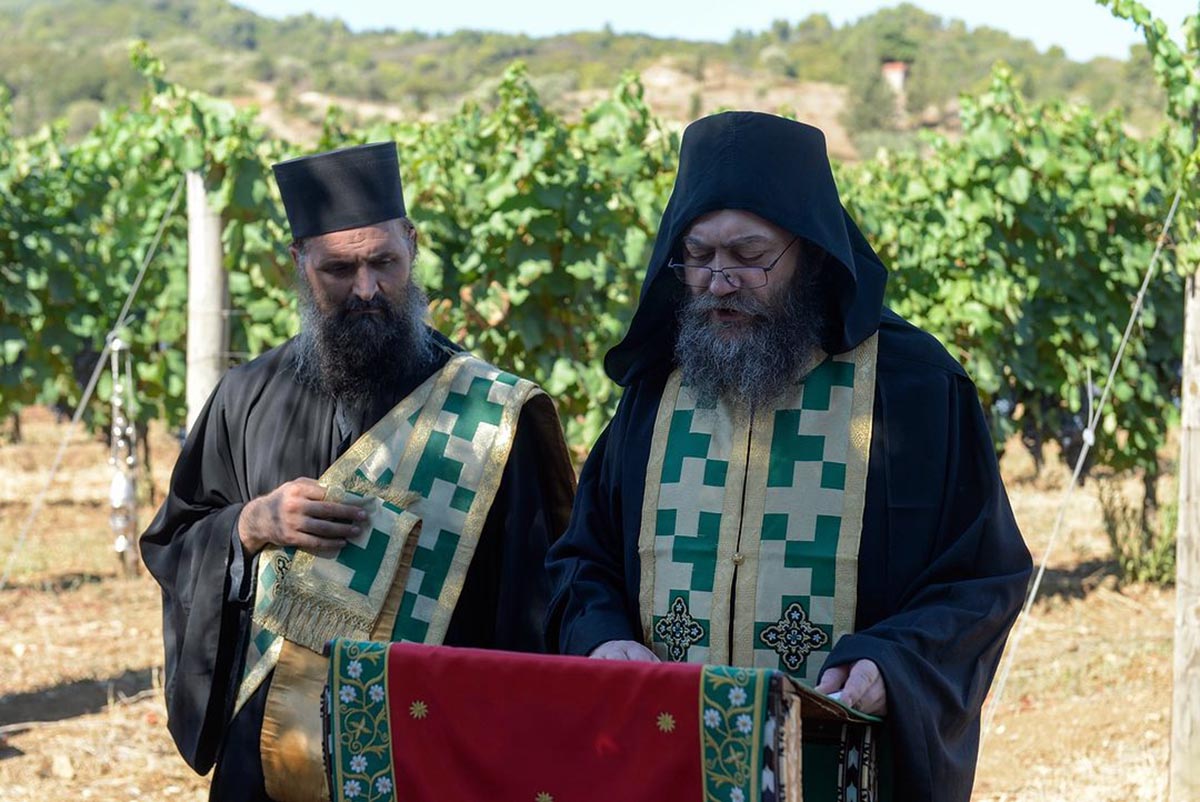 Игуман Методије, у пратњи јерођакона Харитона, благосиљао је чокоте грожђа који се простиру на