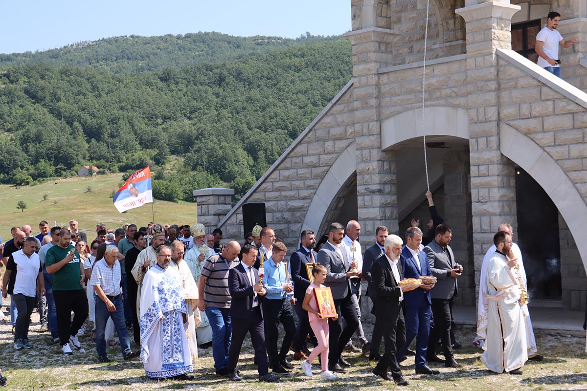 Храмовна слава прослављена је литијским опходом око храма, након чега је освештан и преломљен славски колач и жито.