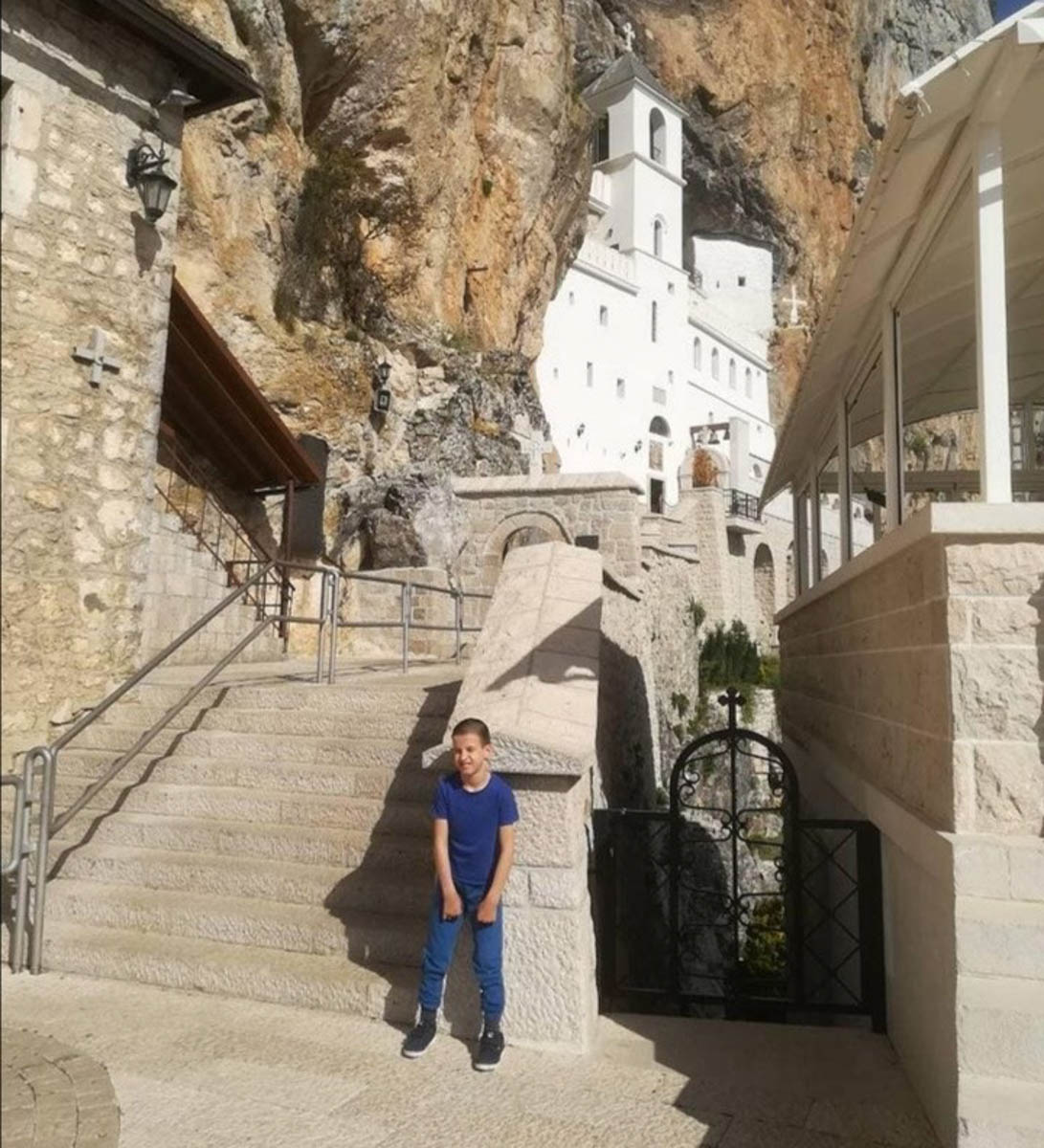 Моја душа се натапа њима. Тако памтим и свој први одлазак у Острошку светињу. Био је то мјесец мај 2018. љета Господњег. Било ми је 12 година. Враћали смо се мајка и ја из Игала са мојим братом од тетке. Када смо били близу Никшића брат и мајка су се договорили, а да ја све то не знам, да ме поведу на поклоњење Острошком Чудотворцу Василију. Спавао сам током читавог пута и у сну видио неки кривудав пут али нисам знао куда он води. Када смо стигли пробудили су ме мајка и брат. Нисам знао где се налазим. Био сам збуњен када сам угледао острошку капију и порту, нисам вјеровао да се под Острогом налазим. Осећао сам се као да ми је Господ у том тренутку подарио анђелска крила. Тим Светим Острошким стазама ходао сам босоног. Док сам жив памтићу када смо мајка и ја пришли ћивоту. Поред кивота је стајао свештеник а мама му је кроз сузе рекла: ”Молим Вас оче, очитајте молитву мом сину”. Док ми је свештеник читао молитву, клечући на коленима испред моштију Светог Василија, молио сам Чудотворца да ми подари снаге да достојно кроз живот носим крст који је од Бога дарован. Да достојно носим тежину мог крста и молио сам се за мајку, оца и сестру, да им Острошки Чудотворац подари снаге да истрају у борби коју због мене воде.