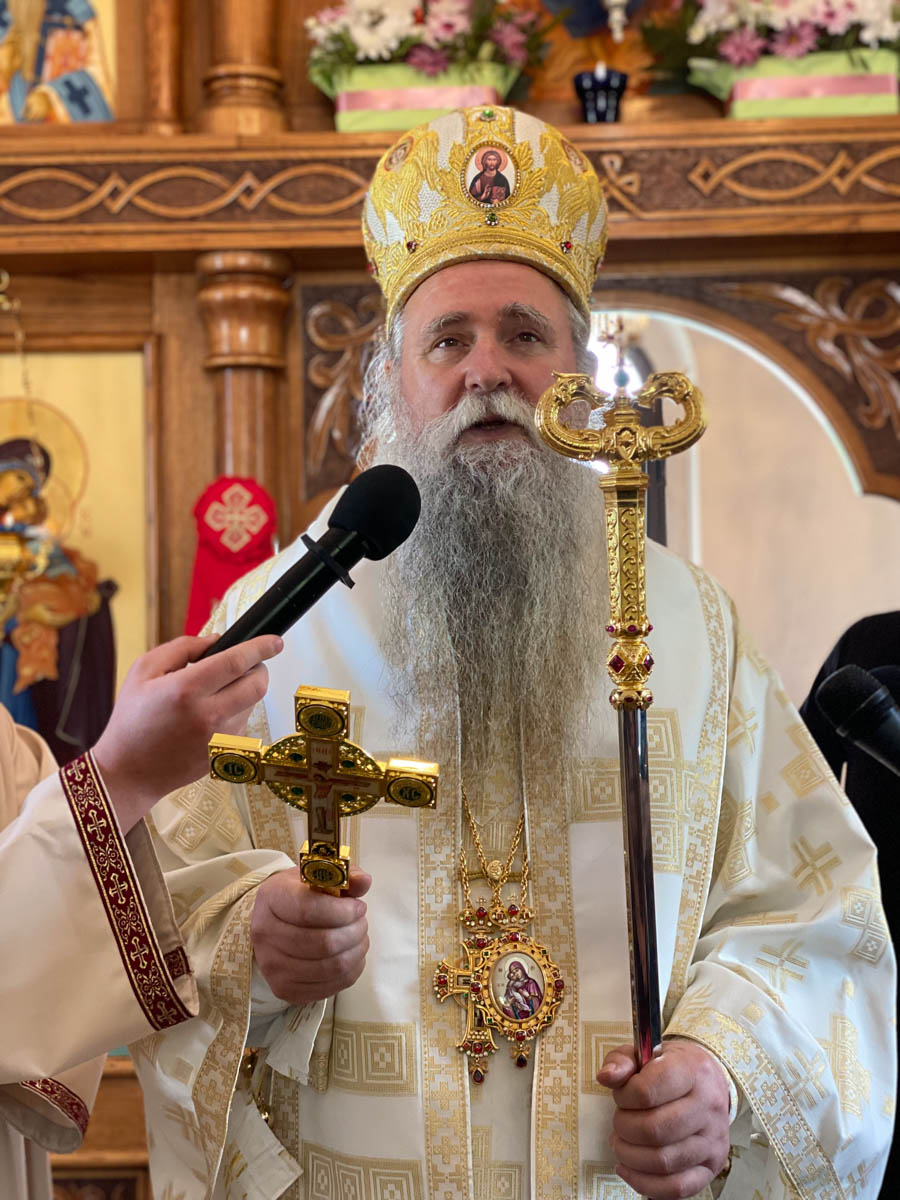 „Само присуство Светог Николаја је било од велике користи за тај велики Сабор и не само да није био кажњен, него се показао као, и увијек, бранитељ свете вјере православне, бранитељ Цркве Божје. Бог му је био дао ту благодат још за вријеме његовог земаљског живота да помаже људима, а послије упокојења ту благодат је добио још више. Од кад се сјединио са божанском бесконачношћу и безграничношћу он стиже свуда да помаже, он је брзи помоћник у невољама, заштитник убогих и сиротих, онај који спасава од бура морских на пучини морској али и који још више спасава од бура душевних у искушењима на мору овог живота“, рекао је Митрополит Јоаникије, захваливши у своје и у име Владике Методија оцу Раденку Копривици, надлежном пароху и Одбору за изградњу храма и свим добротворима, приложницима и украситељима којих је велики број.