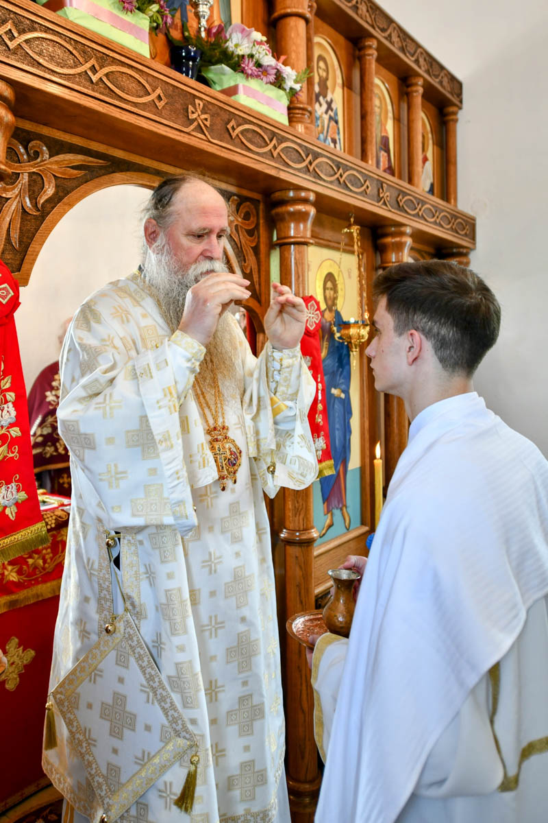Након читања светог Јеванђеља, литургијском проповједи се обратио Епископ Методије, рекавши да Христос Бог, како се чуло у данашњем јеванђељу, у својој првосвештеничкој молитви каже Оцу свом да га је прославио на земљи, да је завршио дјела, која је имао да заврши и да Он Њега сада прослави као Сина свог.