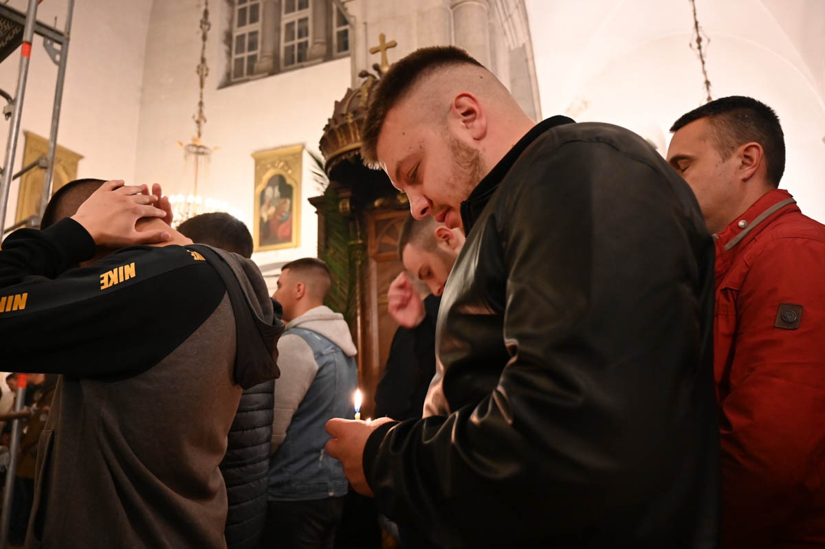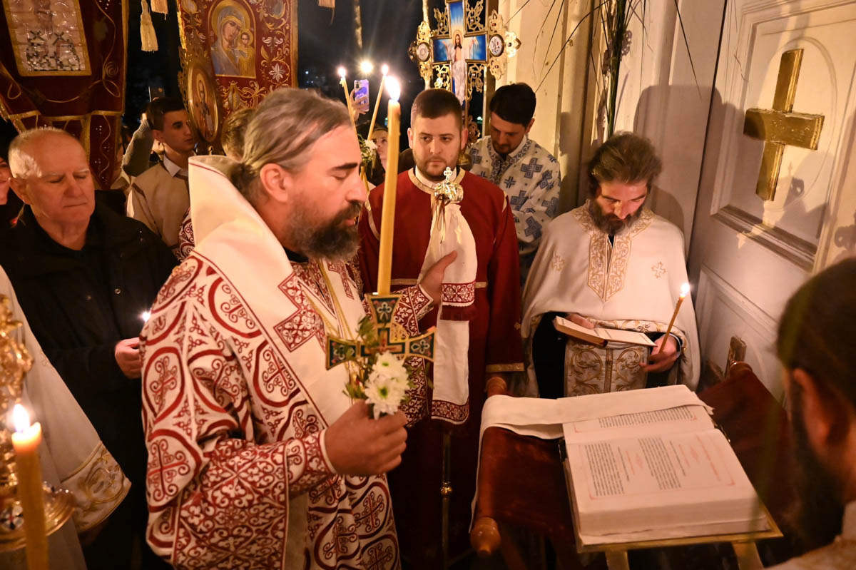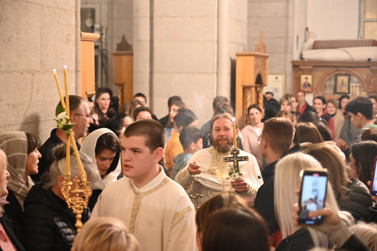 Као и у већини православних храмова, и у Саборном храму Светог Василија Острошког у Никшићу, прослављање највећег хришћанског празника – Васкрса почело је поноћном литургијом.