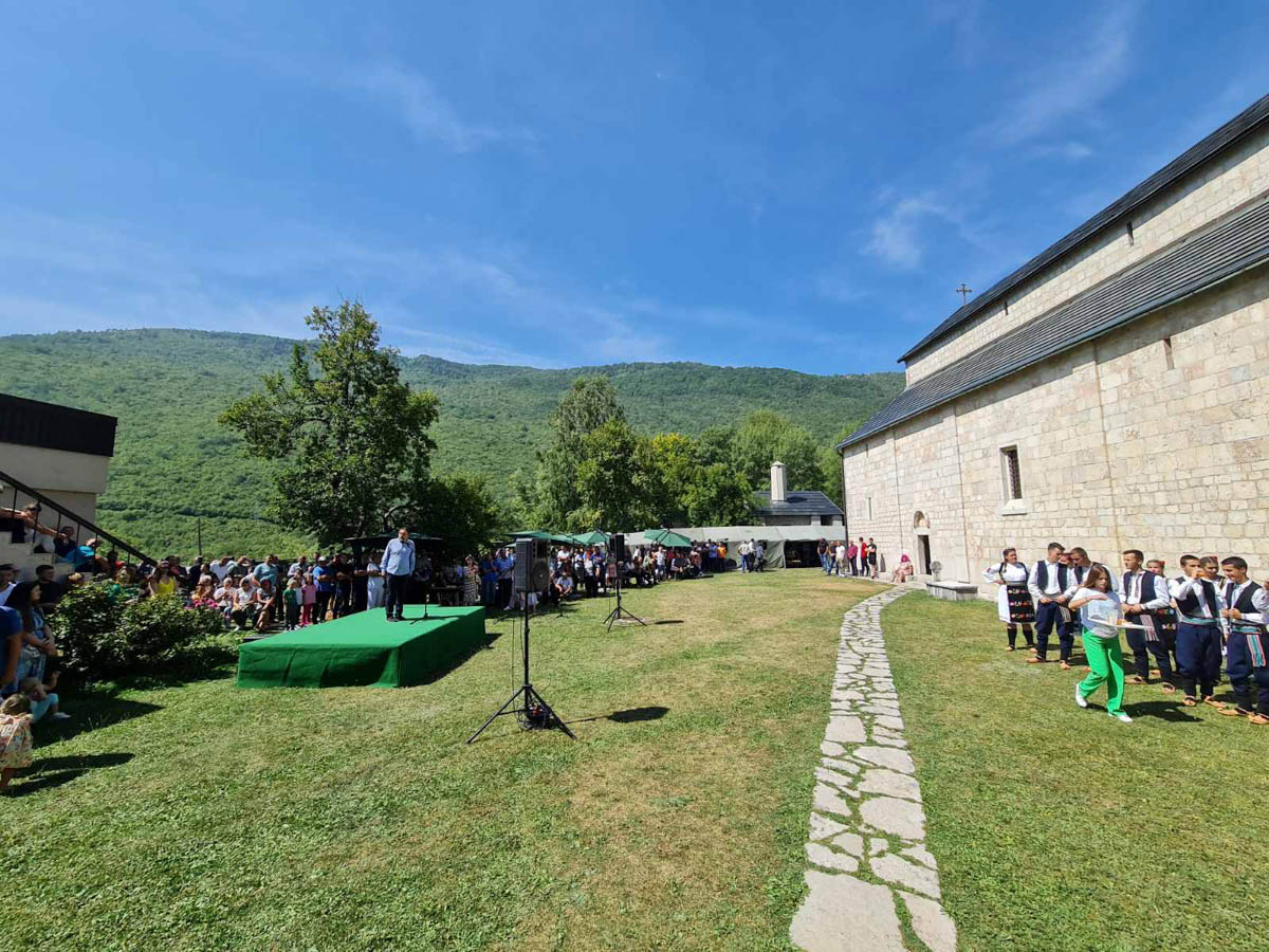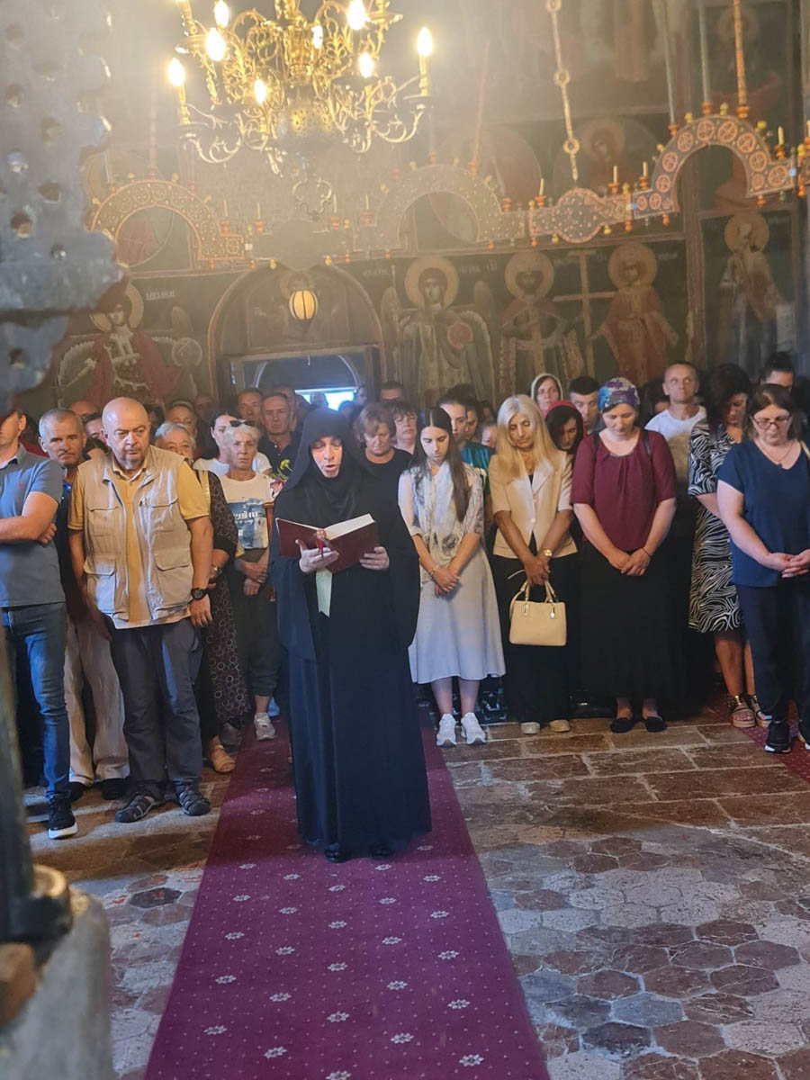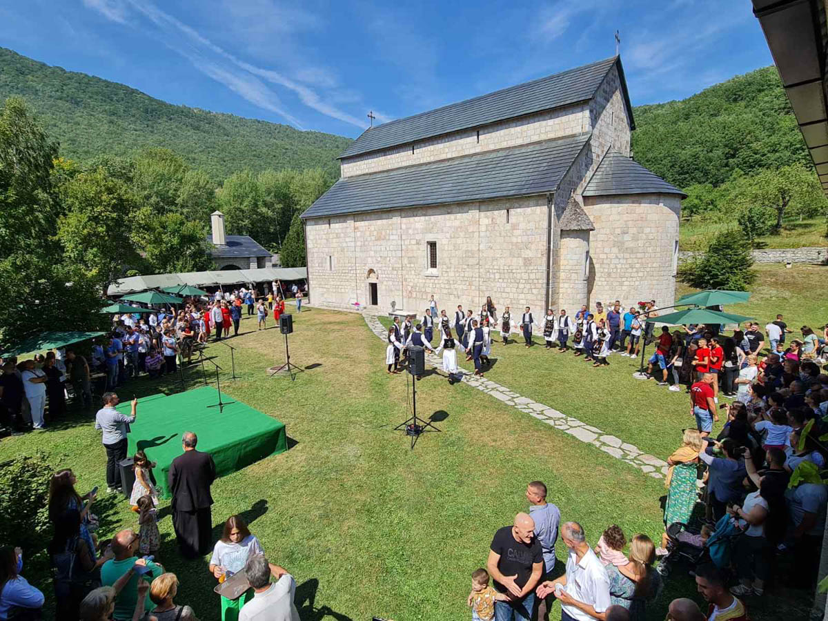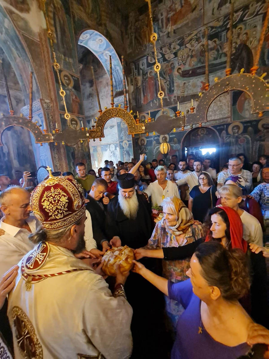 „Кажу да само једно ”Господе помилуј” ко буде могао да изговори, то значи опредјељење за добро, то је поглед ка Богу, ка доброти, ка свјетлости из ове таме и долине плача овог свијета. Само једно, кажу, ”Господе помилуј” биће довољно да се тај човјек спасе. Ја дубоко вјерујем у то опредјељење свих нас који смо се овдје окупили и који се окупљају на другим мјестима око жртвеника Господњег и око Његовог тијела и крви Његове, и оних који се из разних разлога нису могли физички бити овдје присутни, али жуде и чезну за тим тајанственим даном, Чију зору и Њено успеније данас прослављамо. Сретан празник свима, светом оцу игуману, његовој братији, данашњем домаћину славе Жељку Митрићу, а јавио се и будући домаћин Здравко Апрцовић, пјесник, за следећу годину“, навео је Епископ будимљанско-никшићки Методије.
