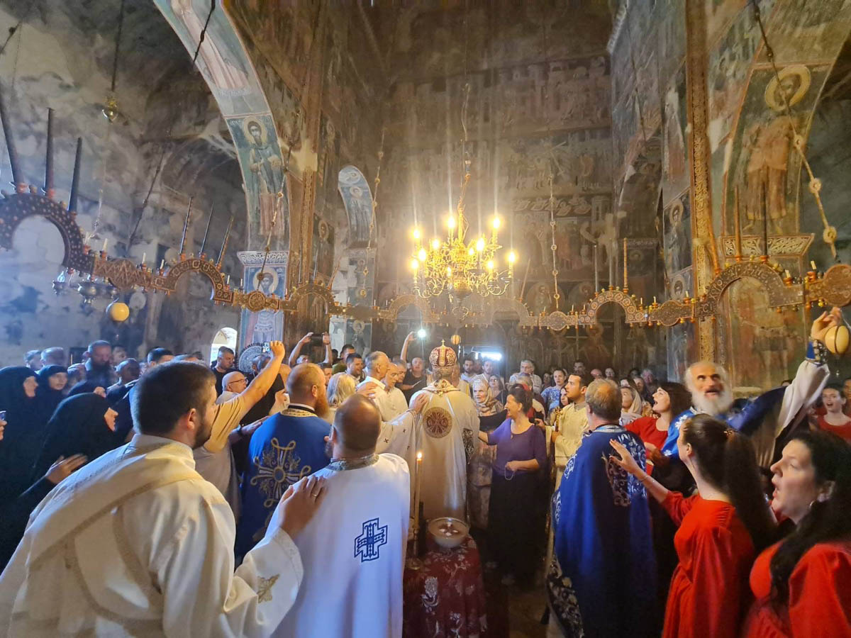 „Оче игумане, часни оци, сестре монахиње, народни прваци, браћо и сестре, срећна слава. Увијек сам мислио како ли је било тим људима, кад се овако дивно постројен храм и осликан, тим чобанима, тежацима и сељацима и ратницима, који су овдје живјели, у ближем и ширем окружењу ове свете обитељи, како им је било гледати у овакву дивоту и красоту овог светом храма; живјели су у својим оскудним колибама, савардацима, ријетко ко у каменим кулама. И како су они поред Дечана што су у средњем вијеку пролазили, шта су они мислили, гледајући љепоту ових светих храмова које су наши преци, владари, велможе, властела, народ подизали у оваквим и дивним крајевима као што је Пива“, казао је Владика, додавши да данас прослављамо Пресвету Богородицу, Њено успеније.