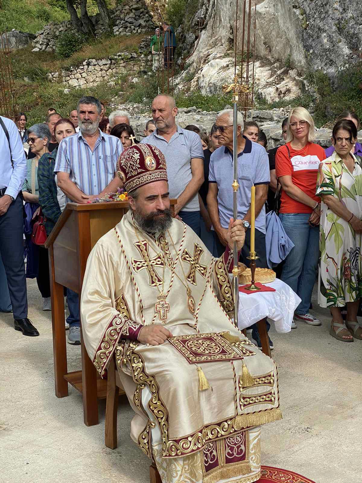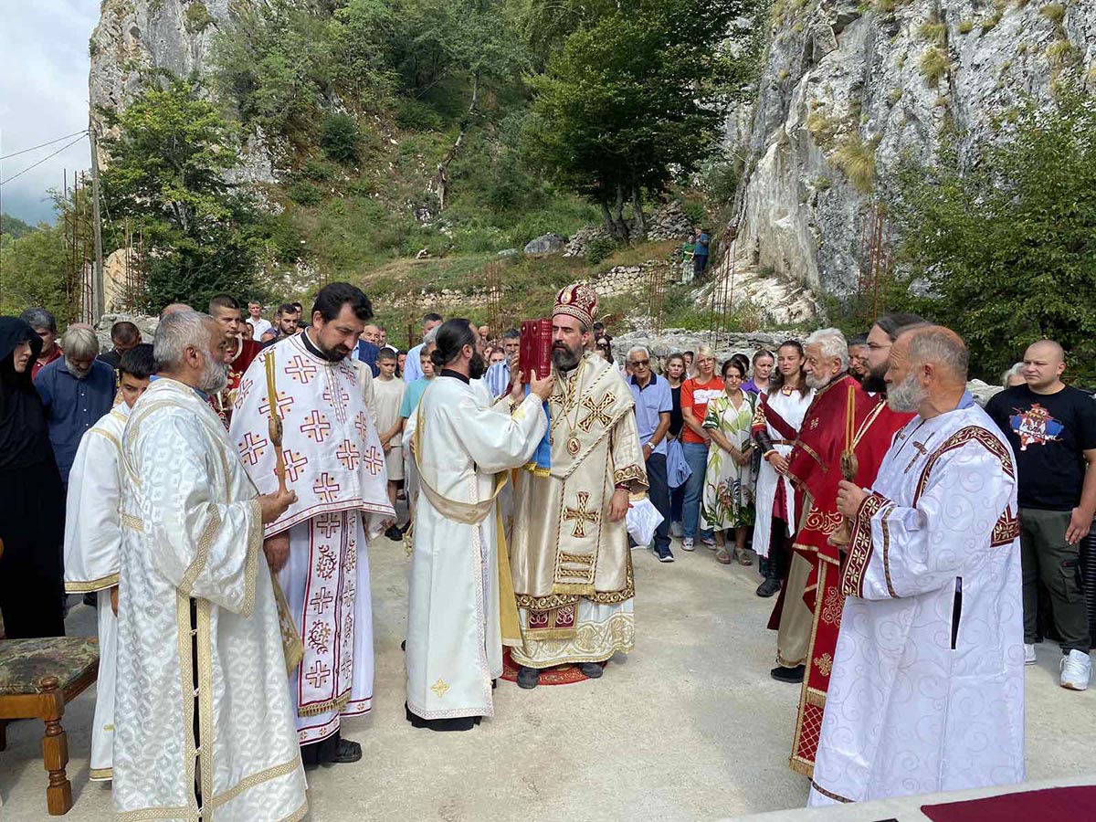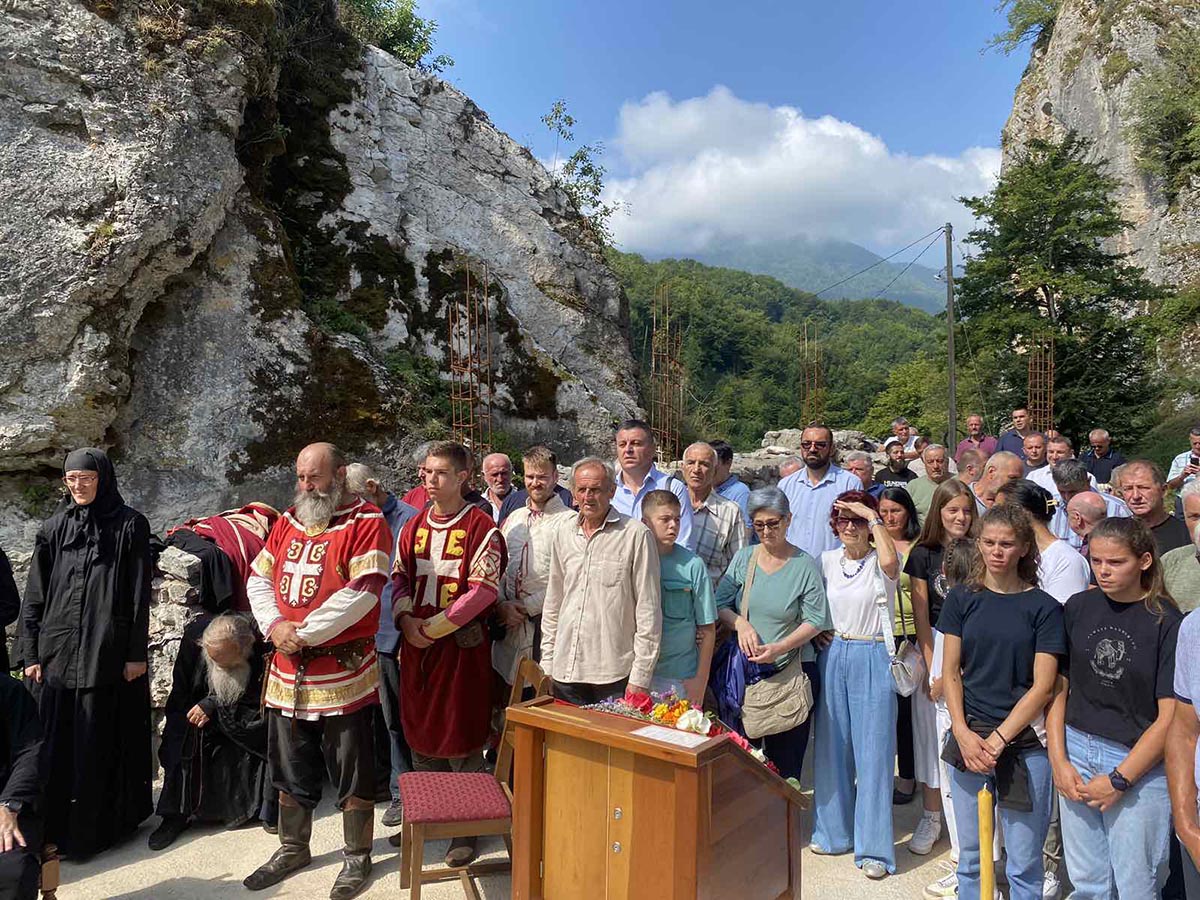 „Сваки овај камен, и у подзиди, и свака ова стијена, седам њих, стожина које овдје закриљују ову светињу као седам Светих Тајни које закриљују људску душу и чувају је, и спремају за живот у вјечној заједници са Богом. Сваки овај камен је натопљен благодаћу Духа Светог вјековима. Нема те људске душе која овдје кад уђе у овај простор то дубоко не осјећа. И блажене успомене Митрополит Амфилохије је својевремено говорио да је ово посебно мјесто, не само по овим стијенама и у овој својој конфигурацији каква је јединствена и лијепа, него у тој атмосфери и благодатној енергији која избија из овог мјеста, тај огњени стуб. Он је то поредио са највећим светињама које је походио и обилазио и говорио је да би овдје највише волио да проводи своје вријеме, да се подвизава и да се Богу моли“, казао је Владика.