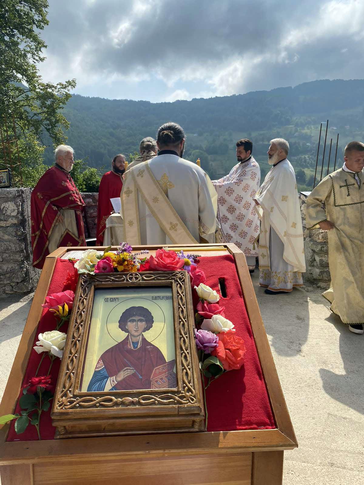 „Свети великомученик Пантелејмон, мартир на грчком значи свједок, мученици у преводу су свједоци Христови, они су свједочили благодат Божју и небо и зато овај свијет прогони све оне који иду Христовим путем. Зато што они нису од овога свијета, од логике овога свијета, свој живот не заснивају и не утемељују на логици овога свијета, на положајима, моћи, новцу, него утемељују на Христу, на правди и истини, свим оним именима Христовим и врлинама које овдје сабирајући се, молећи се, облагодаћујући се стичемо и развијамо у себи тиме оснажујући свој дух, и своју душу и припремајући је за Царство небеско, Царство вјечно, за небеску заједницу“, бесједио је Његово Преосвештенство.