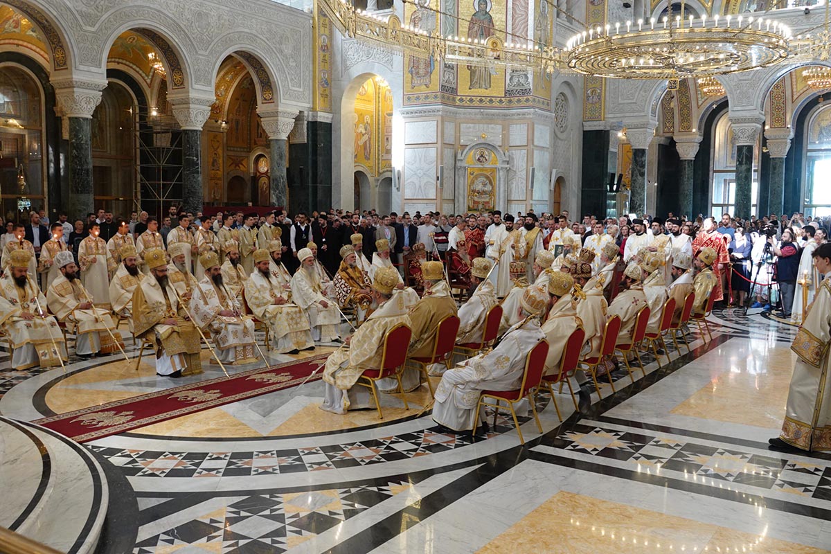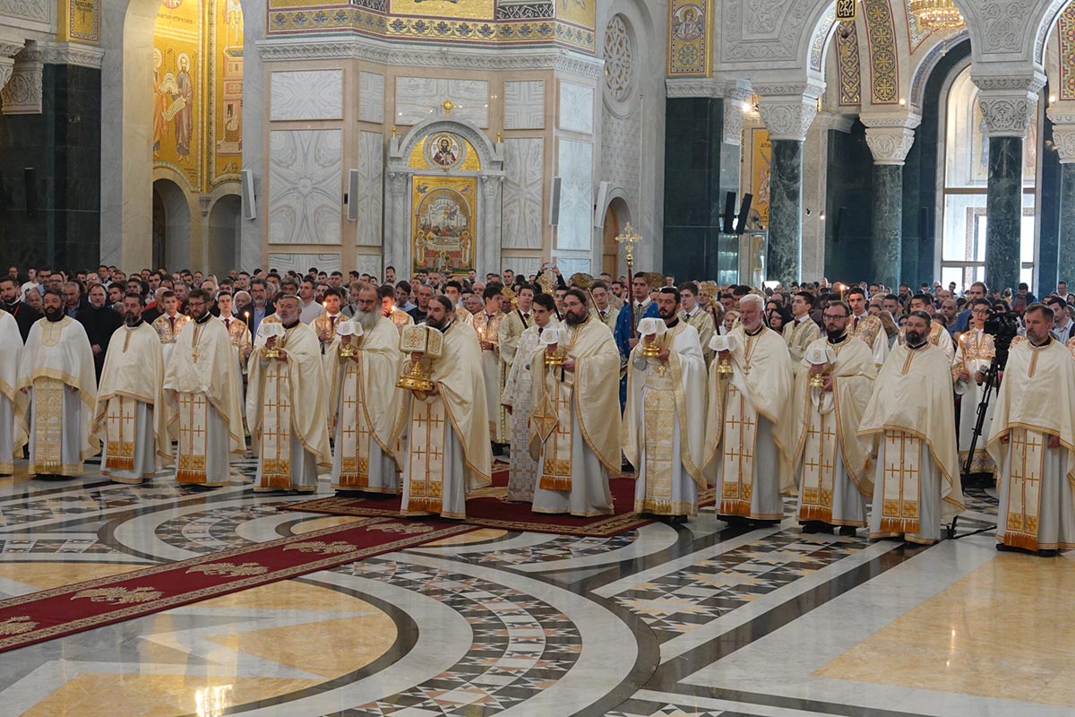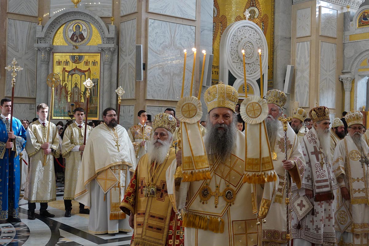 Његова Светост Патријарх српски г. Порфирије је началствовао 19. маја 2024. године, у Недељу мироносица, светом Литургијом у храму Светог Саве на Врачару.