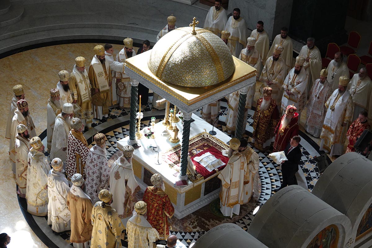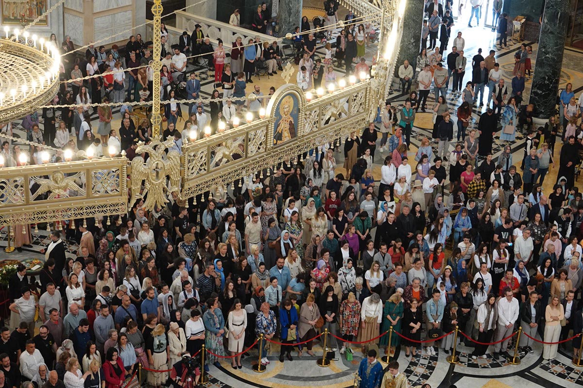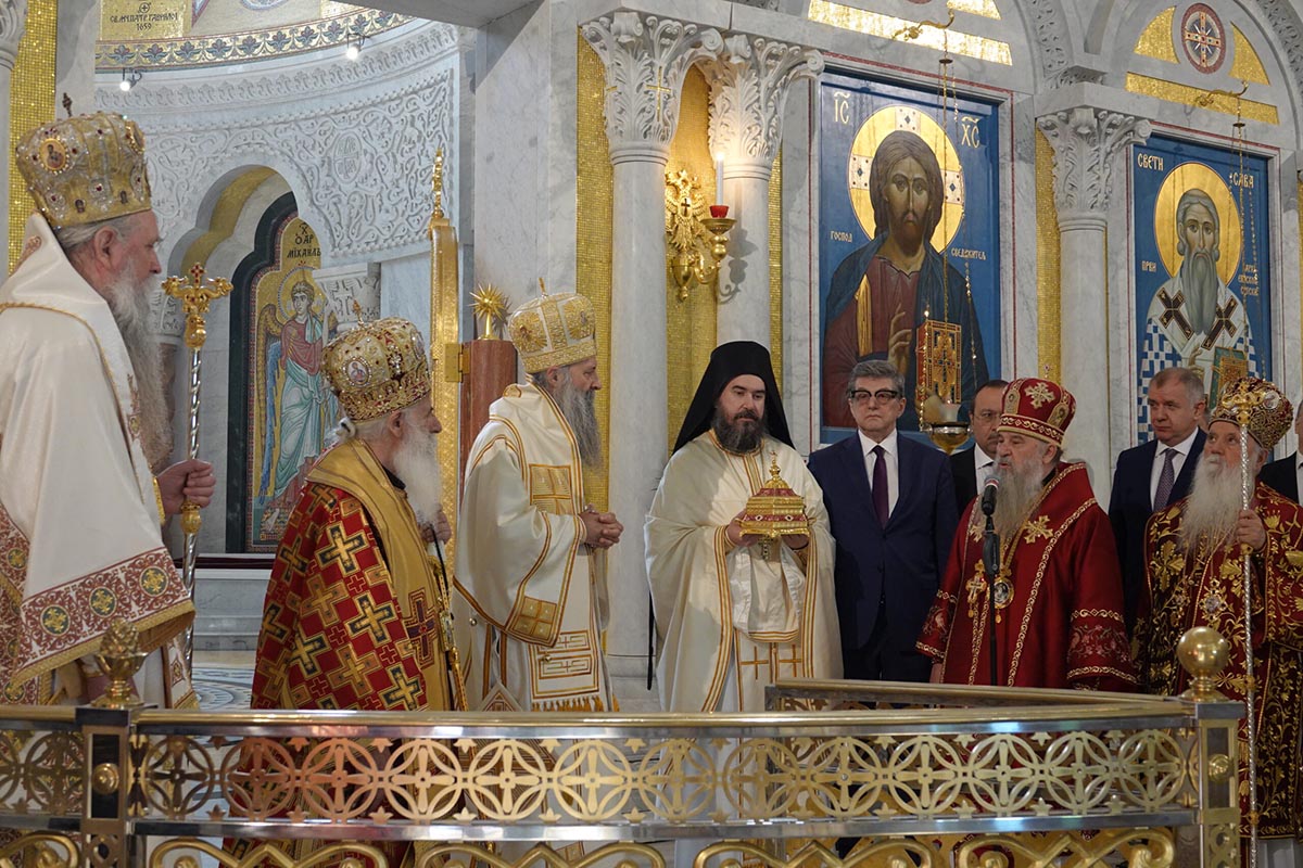 На крају свете Литургије, драги гост из сестринске Руске Православне Цркве, митрополит Варсонуфије, уручио је патријарху Порфирију, а преко њега и свој пуноћи Српске Православне Цркве, велики дар и благослов – честице моштију Светог Лазара Четвородневног и Светих кијево-печерских отаца.