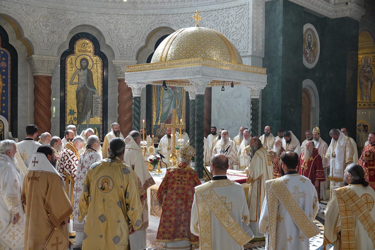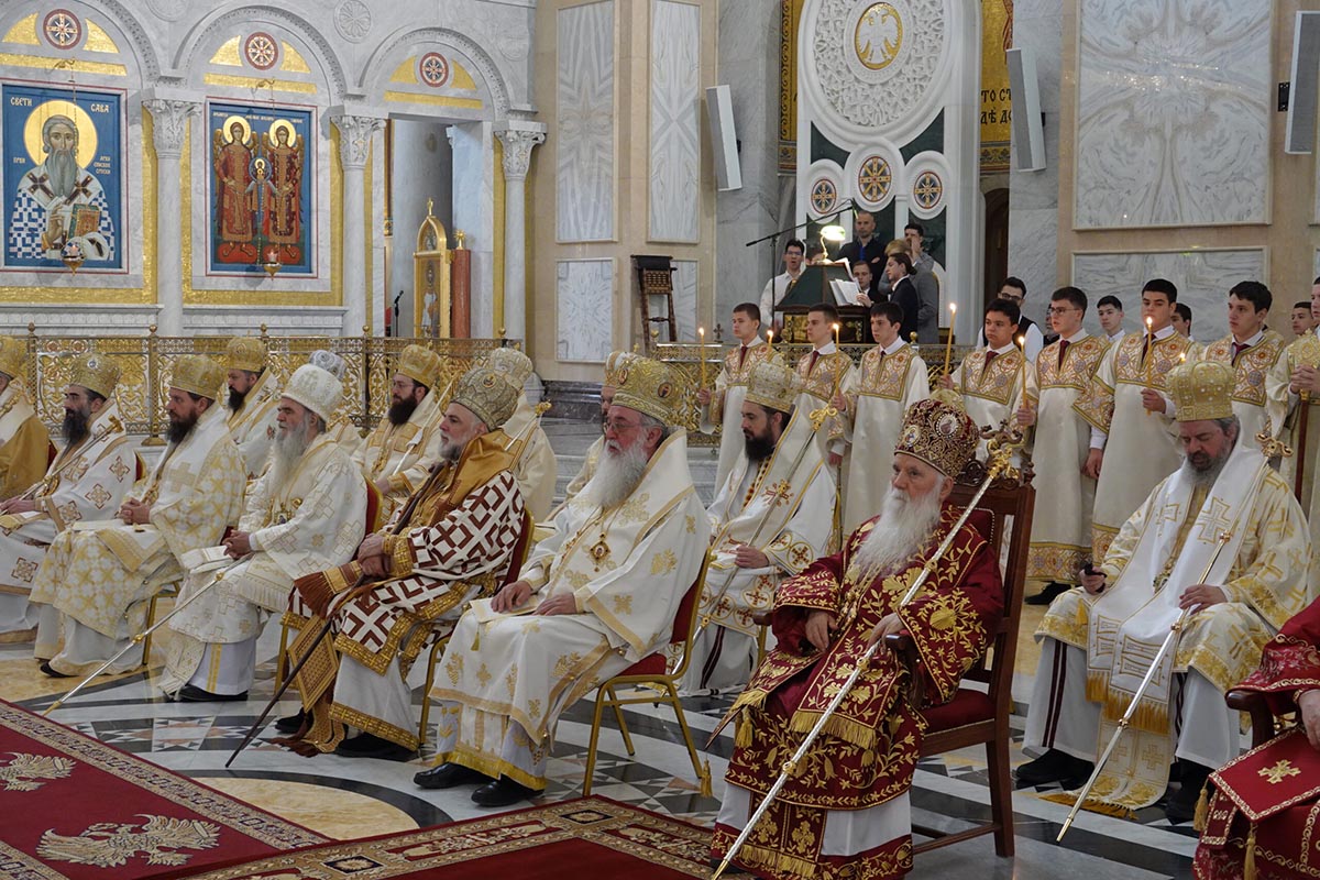 Предстојатељу Српске Православне Цркве су саслуживали отачаствени архијереји сабрани на редовном заседању Светог Архијерејског Сабора, као и гости, високопреосвећена господа митрополити: санкт-петербуршки и ладошки г. Варсонуфије, преспанско-пелагонијски Петар и дебарско-кичевски Тимотеј.
