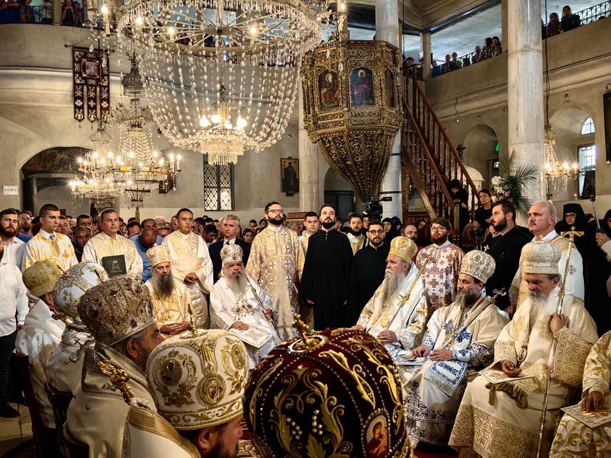 Саслуживали су високопреосвећена и преосвећена господа архијереји: преспанско-пелагонијски и администратор аустралијско-новозеландски Петар, михаловско-кошицки Георгије, зворничко-тузлански Фотије, крушевско-демирхисарски Јован, црногорско-приморски Јоаникије, рашко-призренски Теодосије, европски Пимен, тетовско-гостиварски Јосиф, кумановско-осоговски Григорије, дељадровско-илинденски Јоаким, делчевско-каменички Марко, бивши кумановско-осоговски Јосиф, јегарски и изабрани лондонско-ирски Нектарије, хераклејски Климент, хвостански Алексеј новобрдски Иларион, топлички Петар, дремвитски Давид, стобијски Јаков и велички Никола.