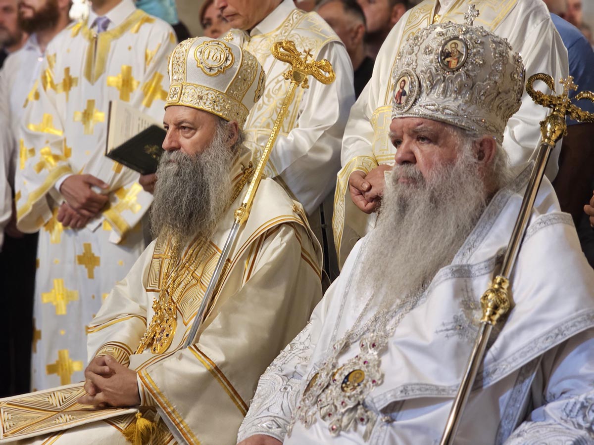 На крају торжественог богослужења Патријарх Порфирије је, поред осталог, истакао: – Саобраћајући међусобно језиком тела у озрачју и радости Педесетнице, ми засигурно – будући да смо једно Тело и једна Крв, да смо Тело Христово, да смо Црква Његова – разумемо једни друге језиком вере и језиком љубави, баш онако као што су три хиљаде људи сабраних у Јерусалиму, који су дошли са свих страна и нису знали јеврејски језик, разумевали апостола Петра који им се обраћао на јеврејском језику као да им говори на њима разумљивом језику. То је било због тога што су имали веру у живог Бога, што су имали љубави према Богу, што су трагали за истином, пуноћом, савршенством и светошћу, а онда је Дух Свети говорио кроз апостола Петра и сви су се међусобно разумели. Тако и ми, браћо и сестре, говорећи истим језиком, језиком Духа Светог, говорећи језиком православним, говорећи језиком Цркве, говорећи језиком љубави, не само да се разумемо, него и истински јесмо једно, јер се причешћујемо истим Телом Христовим и истом Крвљу Његовом.