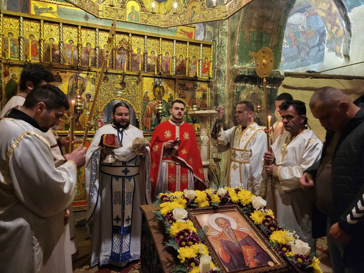У наставку Литургије, коју је служио јереј Милосав Јовановић, освећена је вода са моштима Светитеља Харалампија.
