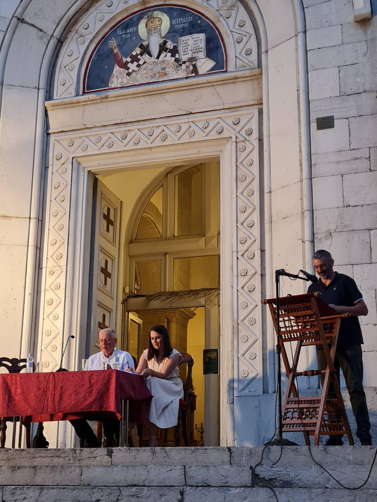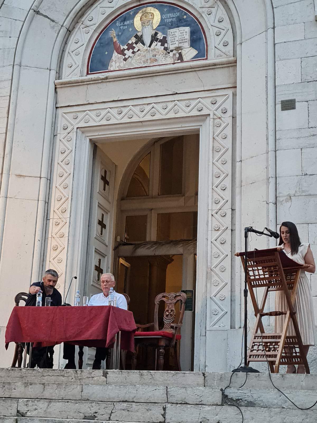 Наредног дана, 18. јула у порти Саборног храма Светог Василија Острошког одржано је вече сатире књижевника: Миленка Мира Шарца из Пљеваља и Јанка Јелића из Никшића. Шарац је говорио о руској сатири, њеном историјату и главним представницима, док се Јелић обратио словом „Одбрана сатире“. Модераторка вечери била је Марија Јелић.