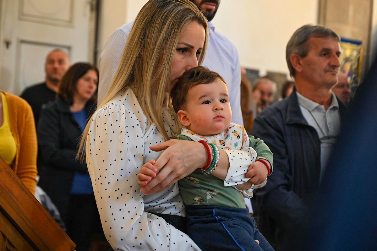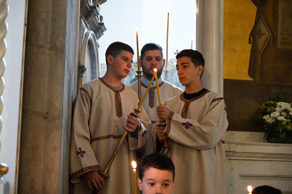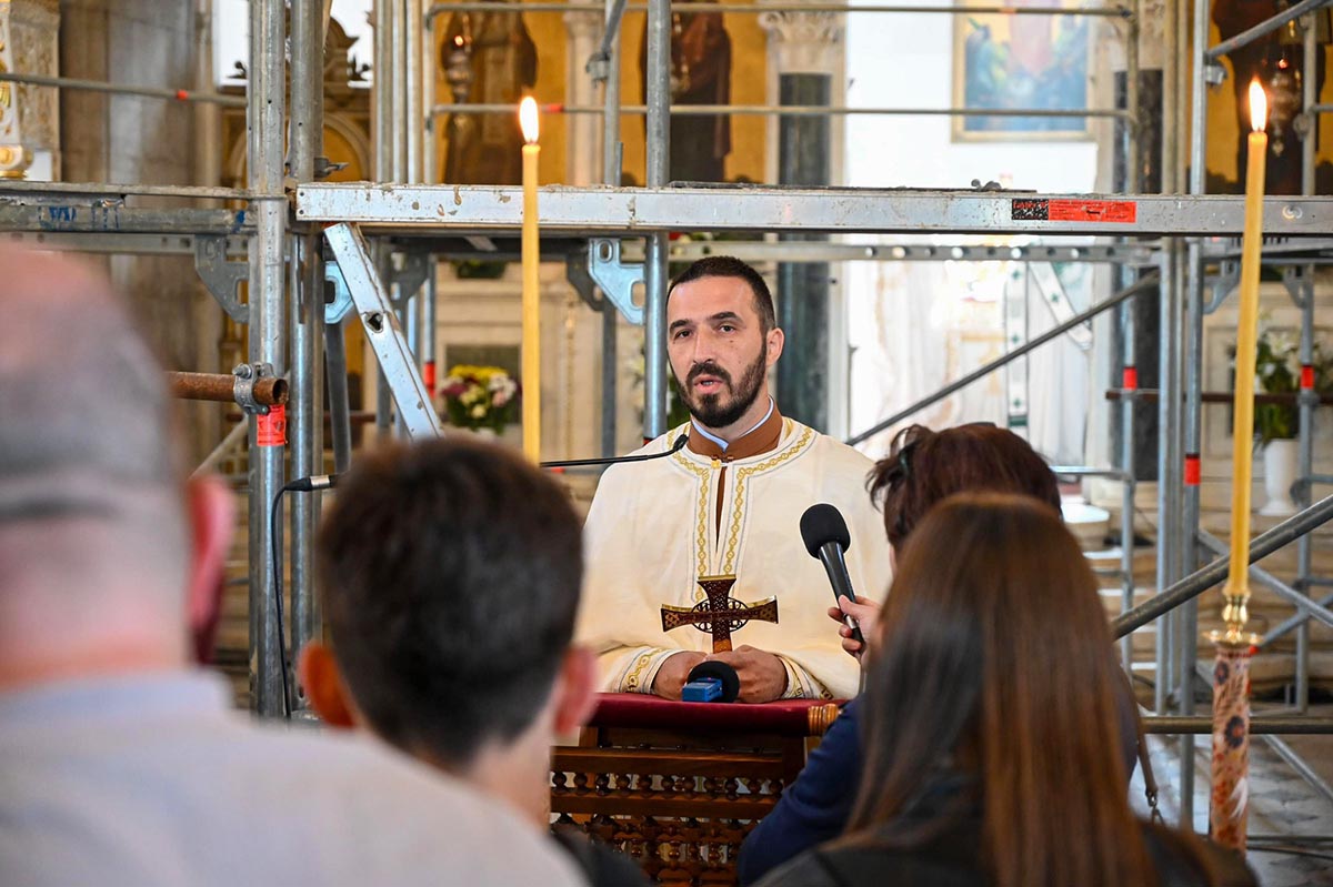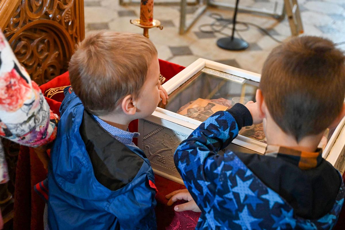 „Да нам Господ Бог да да нас та заједница опомене и покаже све наше слабости, да се исмије сваком нашем властољубљу, да се исмије свакој нашој страсти, али и да их зацијели, да нам та заједница да снаге да пренесемо све оно што нас одваја од Бога, да пренесемо крст који носимо, да са нама умножи наше радости и да растерети наше туге. Зато је за све нас који смо рођени у овом храму и за све нас који замишљамо небески Јерусалим баш са оваквим храмом, који има баш овакав звоник и баш овакву куполу, који никада није живописан бојом, али је увијек живописан живим и истинитим људима, зато је за нас овај дан битан јер онда знамо тачно ко смо и колико смо се удаљили од себе, али и знамо гдје то треба да се вратимо“, бесједио је јереј Тадија Никчевић, поручивши да је дивно бити дио ове заједнице, дио дарова који се изобилно изливају на вјерни народ у овај дан, на овом светом престолу.